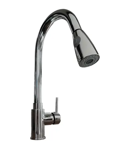 La mezcladora Almada de Aqualía de forma curva puede ser combina con diferentes fregaderos, ofreciéndole a su espacio un aspecto moderno y elegante.